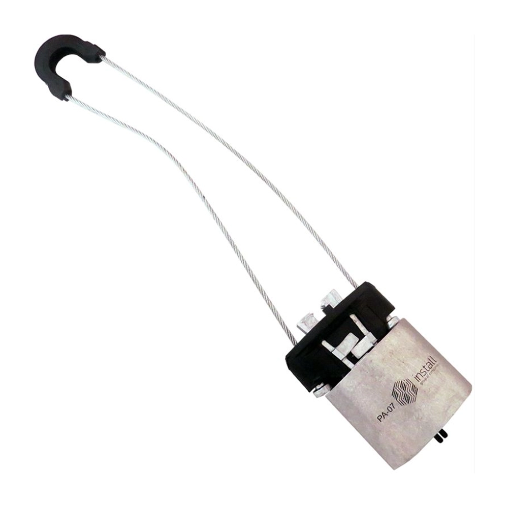 Зажим натяжной (анкерный) PA-07 с минимальной разрушающей нагрузкой 5 кН позволяет быстро и просто закрепить на опорах волоконно-оптический кабель типа "8" диаметром более 7 мм. за несущий трос или проволоку.